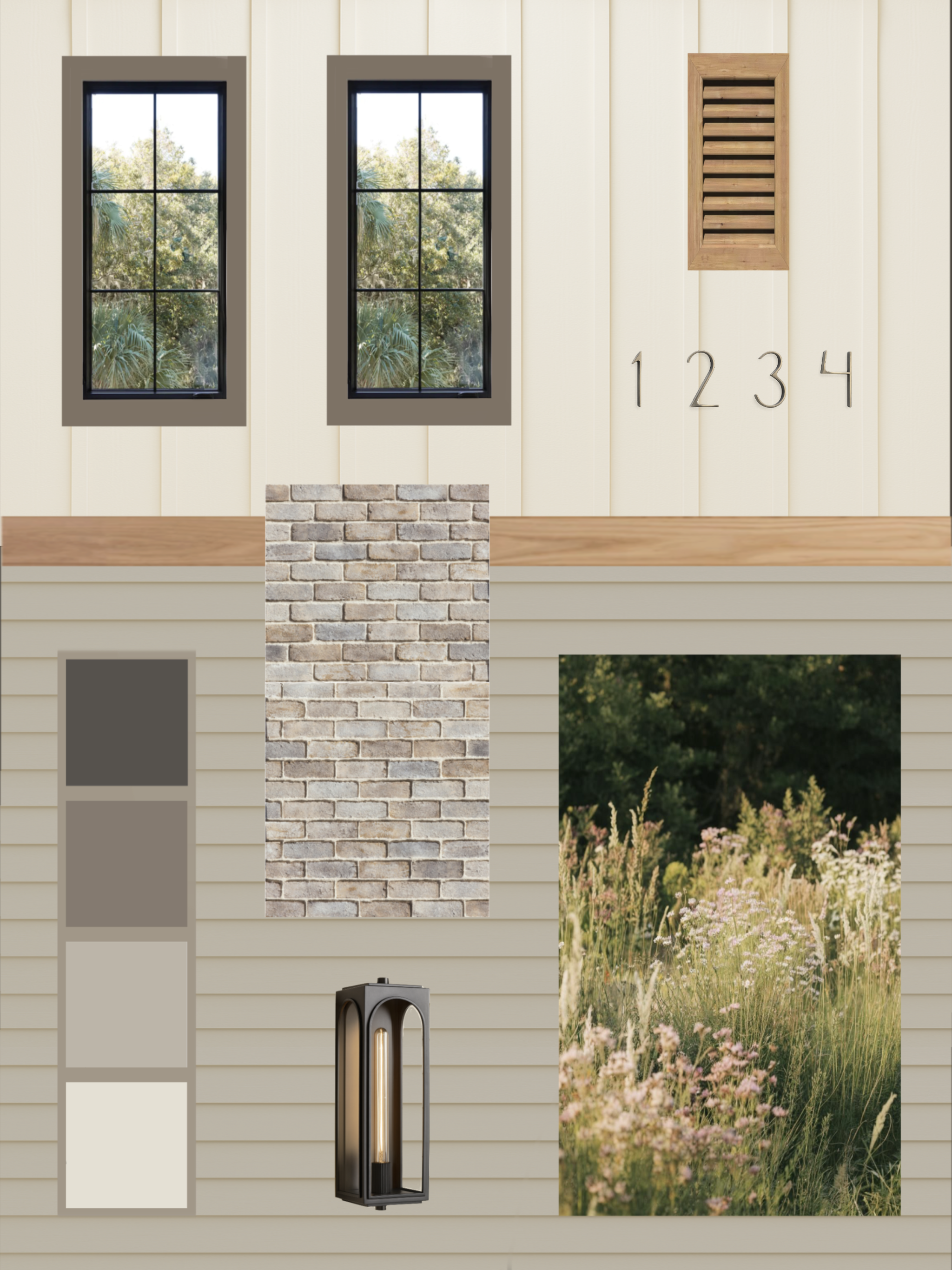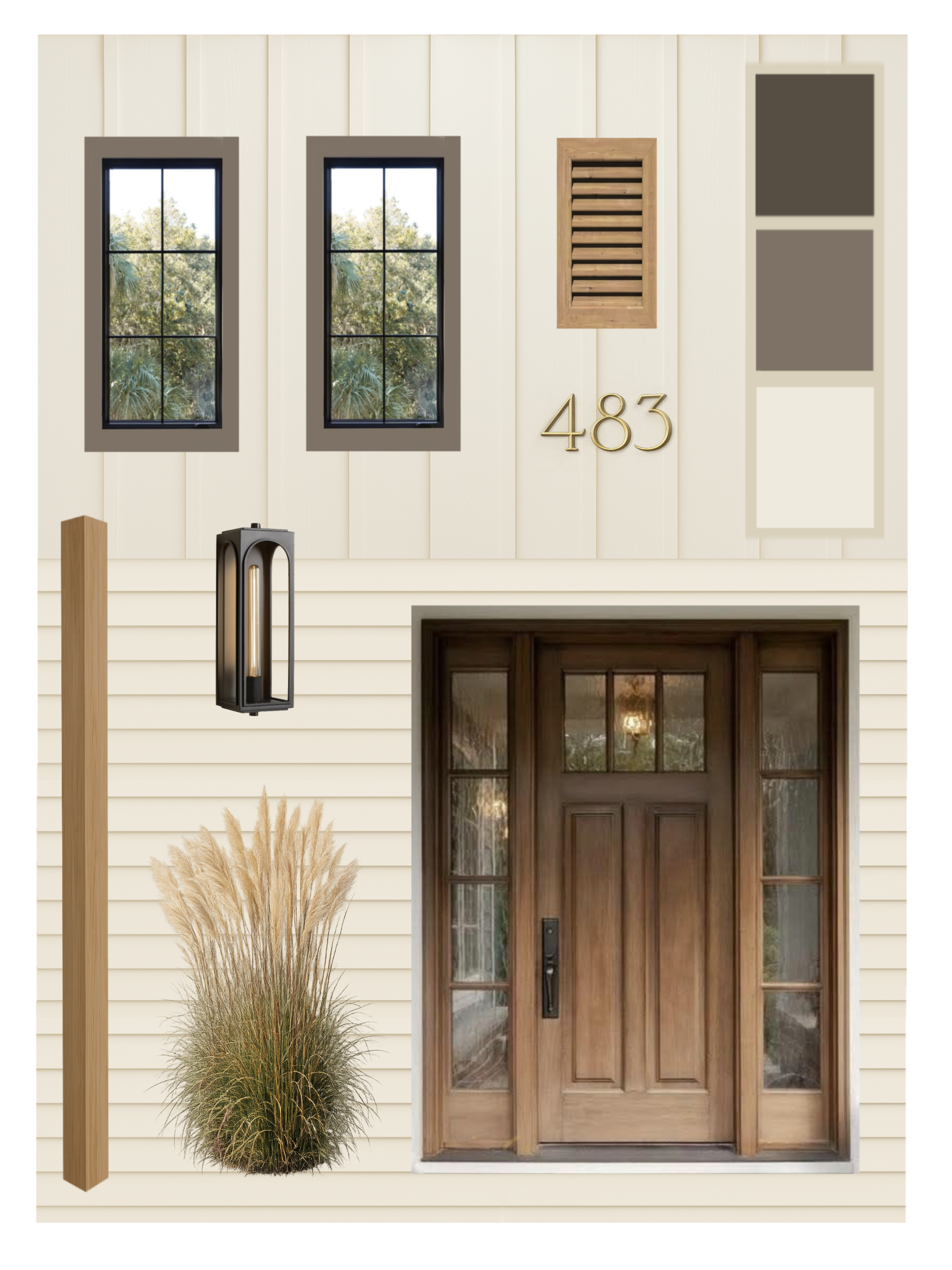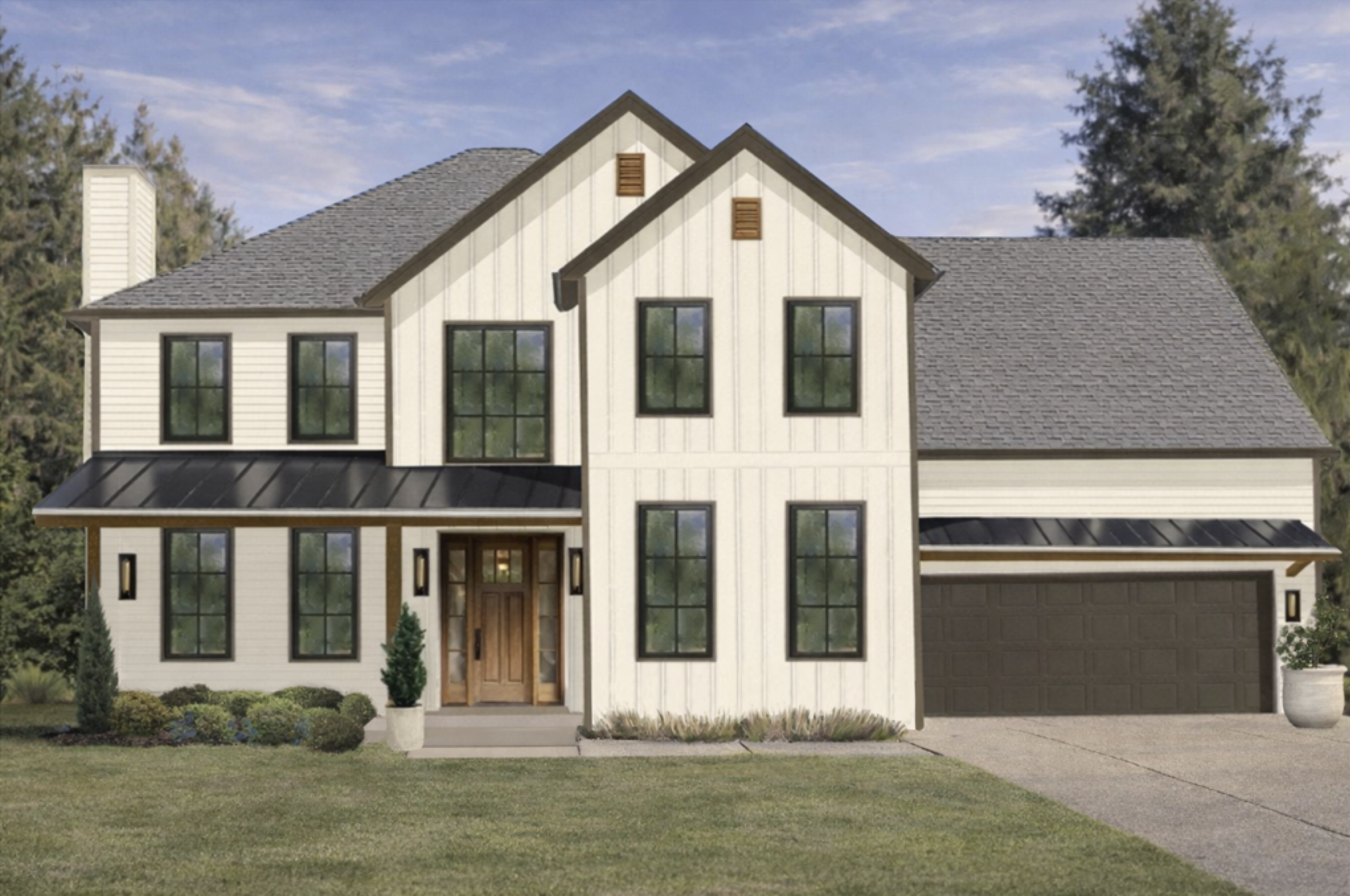 The alternative design package elevates curb appeal while remaining grounded in its context, with warm neutrals and natural textures reinforcing a cohesive relationship to neighboring homes.
